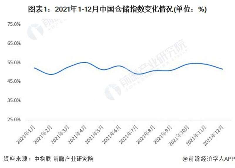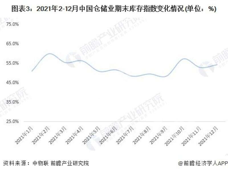 根據(jù)中國物流與采購聯(lián)合數(shù)據(jù),2021年1-12月,中國倉儲業(yè)期末庫存指數(shù)均值為52.9%,保持在榮枯線以上,同比增長2.2個百分點(diǎn),反映出庫存水平明顯上升,企業(yè)庫存壓力所有上升。