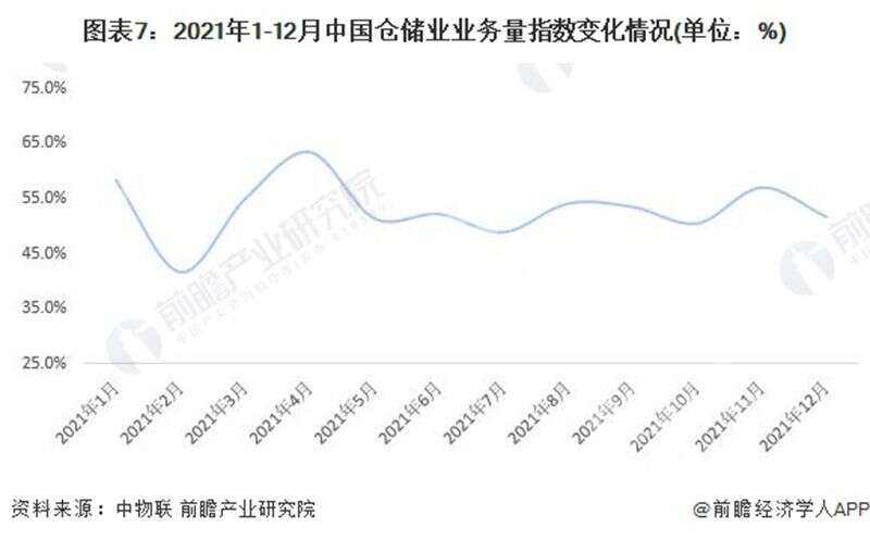 根據(jù)中國物流與采購聯(lián)合數(shù)據(jù),2021年1-12月,中國倉儲業(yè)務(wù)量指數(shù)均值為53.1%,同比增長0.7%,整體位于枯榮線(50%)以上,反映出倉儲行業(yè)需求在企業(yè)生產(chǎn)活動加快和消費(fèi)品需求保持回升的背景下,仍保持較為穩(wěn)定的態(tài)勢。